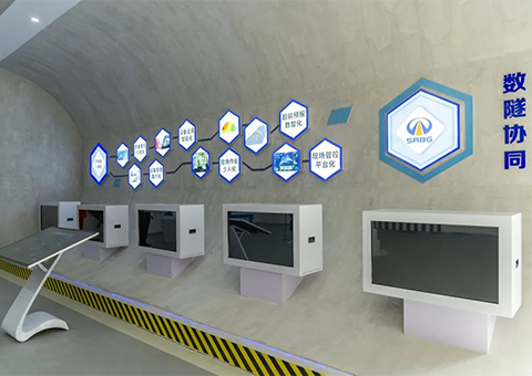 数字隧道展厅包含智能展示区域与会议接待两部分,